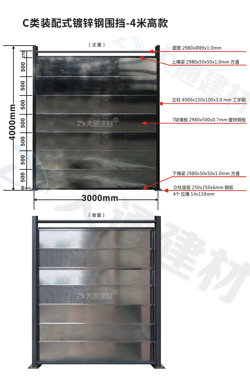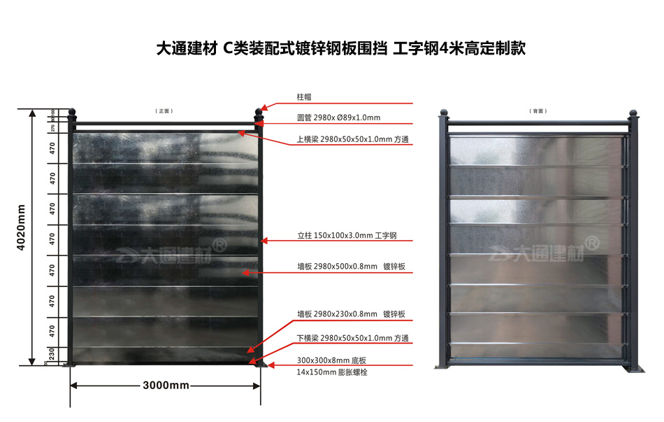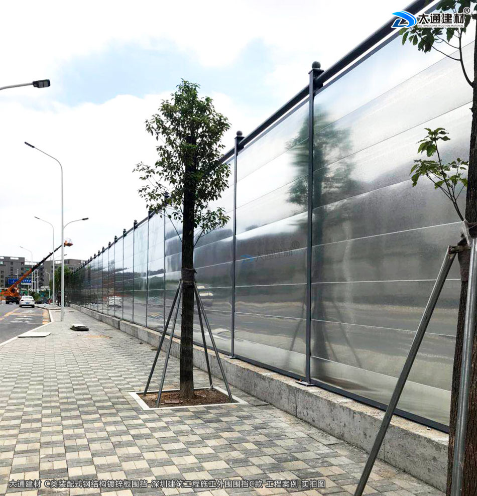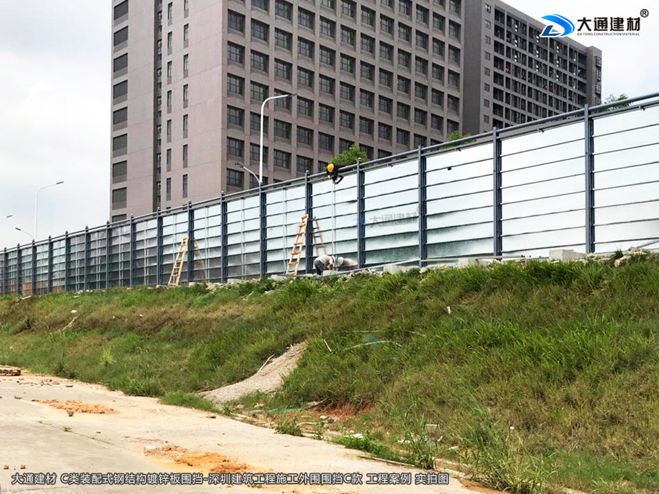 深圳市大通建材生產的C類裝配式鍍鋅鋼結構圍擋4米高定制款,把深圳市龍華區(qū)建筑工程施工現(xiàn)場圍起來,為施工安全保駕護航。